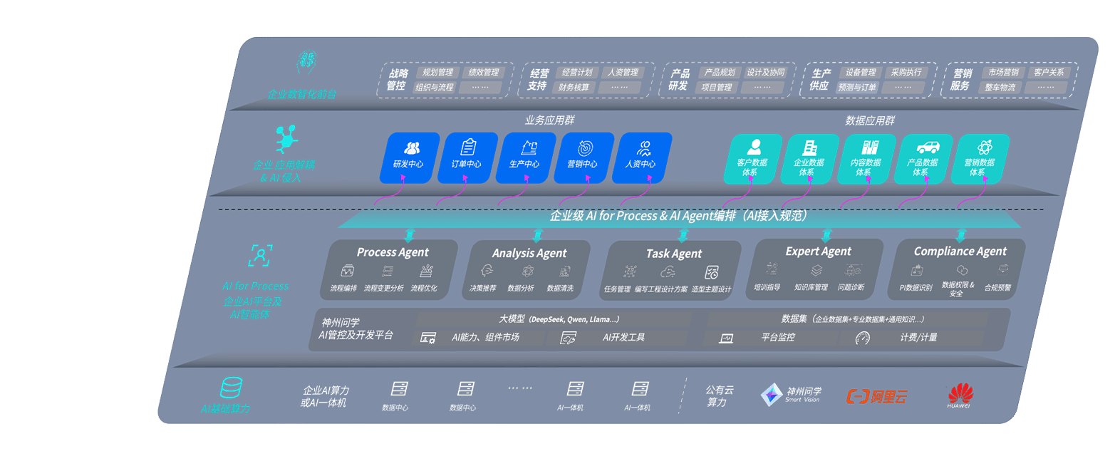 威斯尼斯wns888问学智车解决方案是一套基于AI技术的汽车行业智能化系统,,,覆盖从底层算力到顶层AI应用的全栈方案。。。方案由算力层、、模型层和应用层组成:算力层,,,,方案支持多种一体机配置,,,,具备云端灵活部署、、、、多云适配以及动态优化计算资源的能力;模型层,,威斯尼斯wns888问学平台版提供了企业级AI应用一站式构建与管理平台,,,,支持基于后训练强化技术的汽车企业专属模型的训练、、、评测和运营;应用层,,,威斯尼斯wns888问学DeepSeek版提供包括超级员工、、、、智能招采、、、、智能营销、、、智能客服、、、AI for BI等一系列解决方案,,可助力汽车行业实现数字化转型,,,让管理更智能、、响应更敏捷。。。